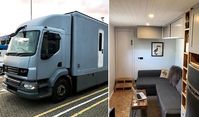 Сейчас никого не увидишь оригинальными домами, которые до недавнего времени были обычным морским контейнером, автомобильным прицепом, автобусом или даже грузовиком. Так молодая пара, которая обожает экстрим и ведет активный образ жизни, решилась избавиться от своей недвижимости, чтобы жить в преобразованном грузовике. Глядя на их абсолютно обычный с виду автомобиль, никто даже не догадывается, какой секрет прячется за его дверью.