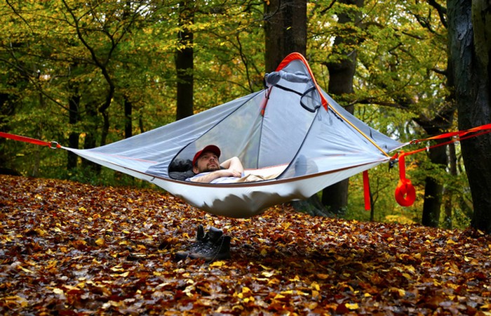 Британская компания Tentsile презентовала палатку-гамак, которая совмещается в себе небольшой вес и функциональность. Благодаря этому её могут взять с собой даже пешие туристы. Вес палатки всего 400 граммов, а с тросами для крепления – 2,3 килограммов.