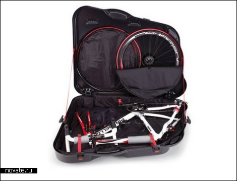 Именно для воздушных путешествий с двухколесным другом фирма AeroTech и выпустила чемодан AEROTECH EVOLUTION. Чемодан этот имеет габариты 114*94*36 сантиметров. И вполне может быть размещен в отделении для багажа в самолете.