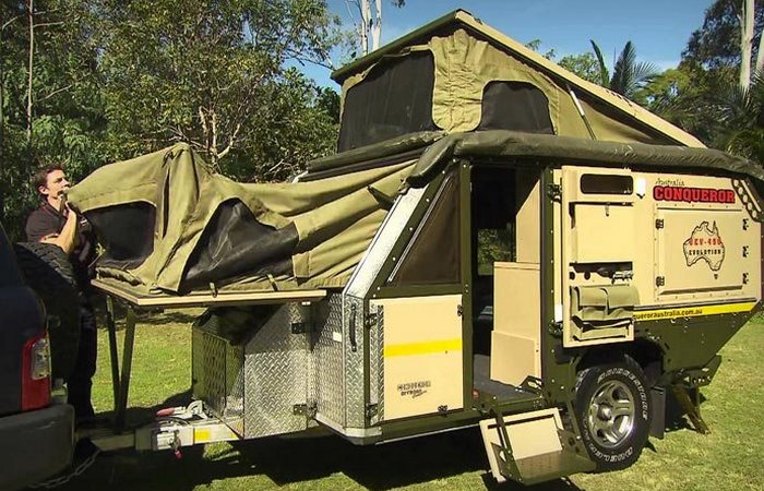 Не менее важной деталью трейлера является еще и тот факт, что для расширения жилого пространства дом «раскладывается» в виде палатки. На установку трейлера нужно не более 15 минут.Прицеп имеет длину в 4.4 метра.
