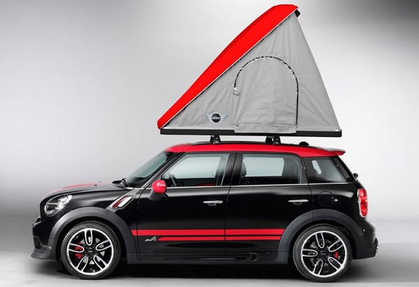Причем, сразу два дополнения. Первое из них - MINI Camper. Это небольшая складывающаяся палатка, которого располагается на крыше автомобиля. В собранном состоянии она имеет весьма маленькие размеры и практически не влияет на аэродинамические характеристики авто. Но стоит только наступить ночи, и ее можно разложить, получив внутри два спальных места.