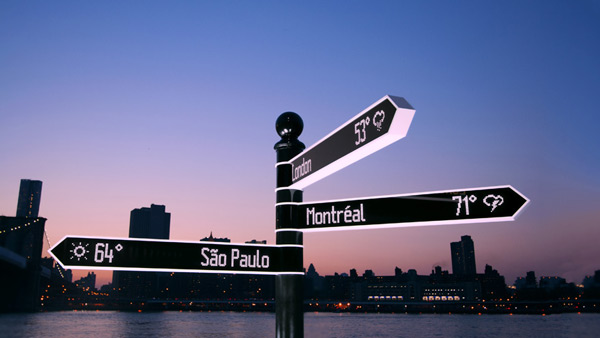В Нью-Йоркском физико-цифровом агентстве разработали самый «умный» дорожный знак в мире – Points, который в интерактивном режиме отображает информацию о трёх любых направлениях. И слово "любых" здесь ключевое. Знак способен указать дорогу к соседнему зданию, соседней улице, объекту на противоположном конце города или даже на противоположном конце земного шара.